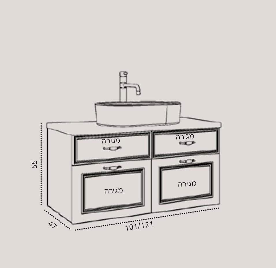 – משטח עליון: כיור חרס אינטגרלי – מראה אחיד ואלגנטי המשלב פונקציונליות ונוחות ניקוי.