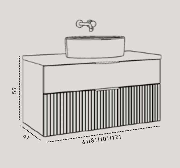 – משטח עליון: כיור חרס אינטגרלי – מראה אחיד, מודרני ונוח לניקוי.