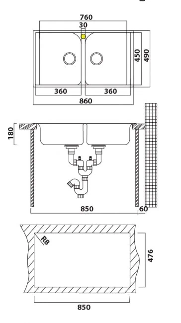 • מבנה: כיור כפול – שני תאים שווים בגודל לנוחות שימוש