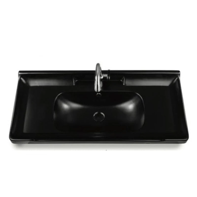 כיור חרס אינטגרלי עם שפה עבה מעוצבת בגוון שחור מט, במידות 80X47 ס"מ. שילוב מודרני של גימור שחור מט עם פרטי עיצוב עתיקים המעניק מראה יוקרתי ואלגנטי לחדר הרחצה.