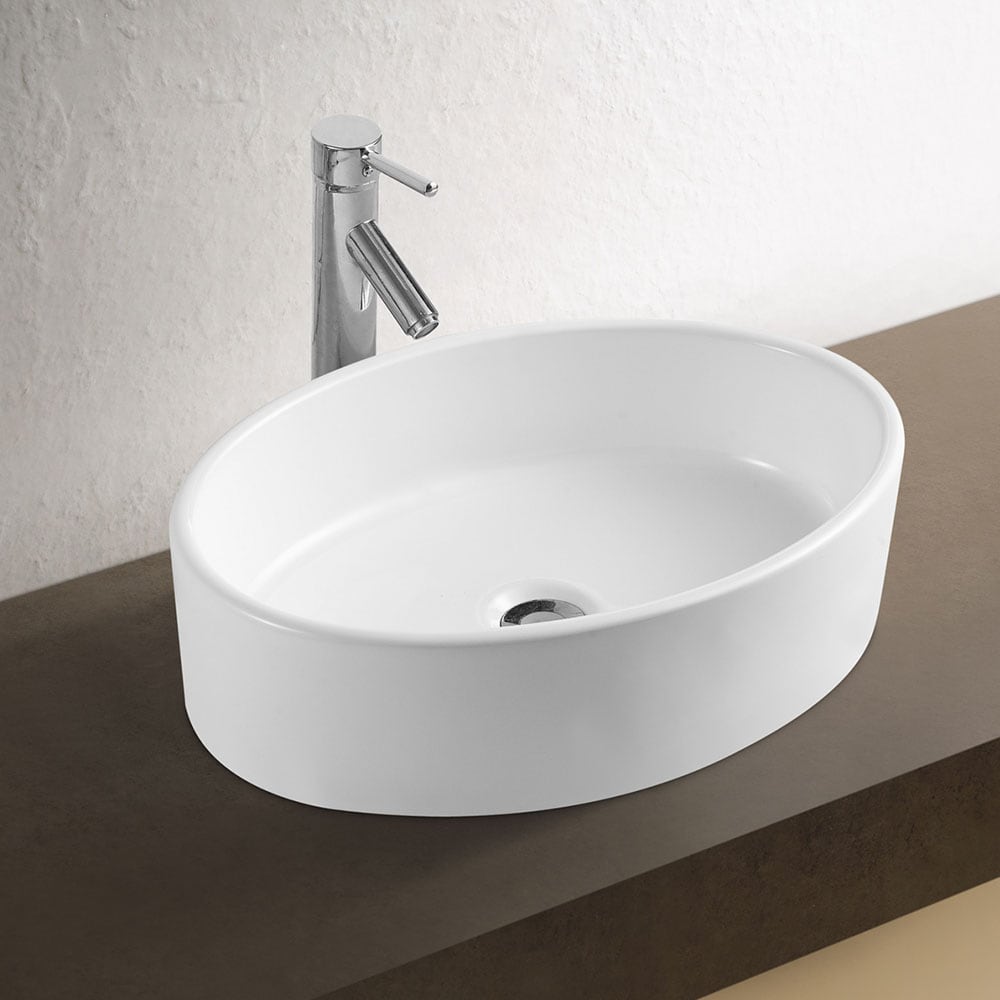 כיור מונח דגם 133069 בגודל 73 ס"מ עשוי חרס בגימור לבן מבריק. פתרון מרווח ויוקרתי המתאים לחדרי רחצה גדולים ומעוצבים.