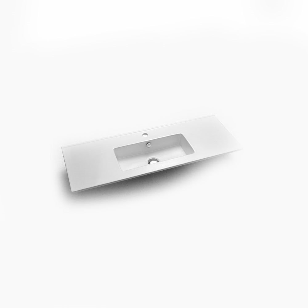 כיור משטח אינטגרלי מחרס לבן מבריק במידות 100X36 ס"מ. עיצוב קלאסי ואלגנטי עם גימור לבן מבריק יוקרתי המעניק מראה נקי ומעודן לחדר הרחצה.