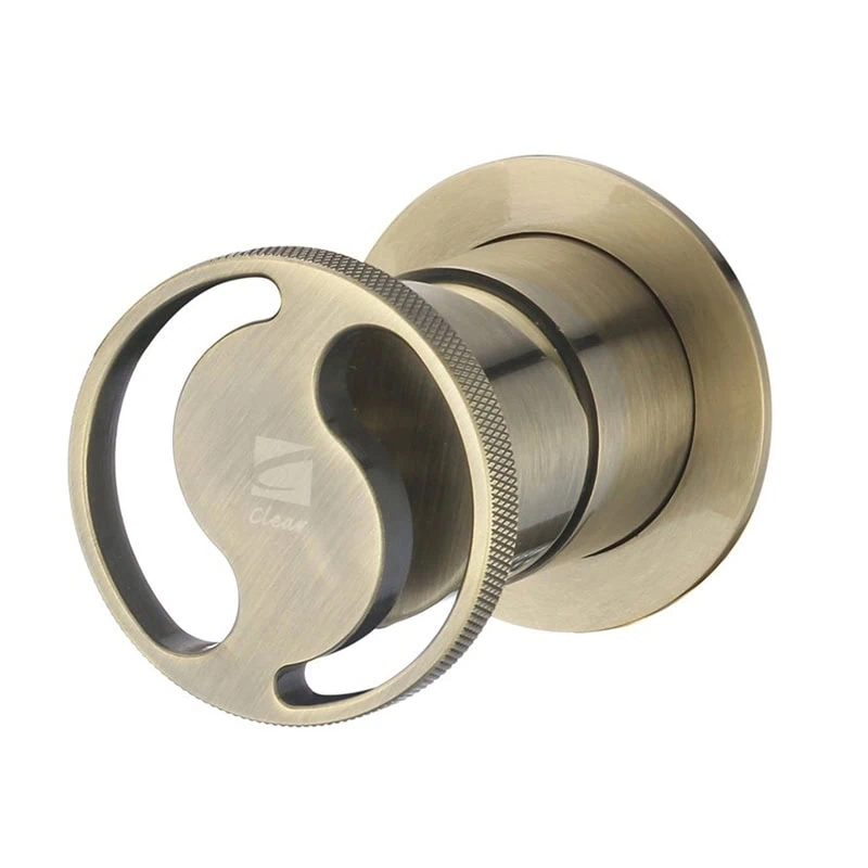 אינטרפוץ 3 דרך עם ידית קליר שקופה בגימור ברונזה צהובה יוקרתי. שילוב אלגנטי של זכוכית שקופה וברונזה עם בקרה מלאה על 3 זרמי מים ועיצוב מיוחד ומעוצב.
