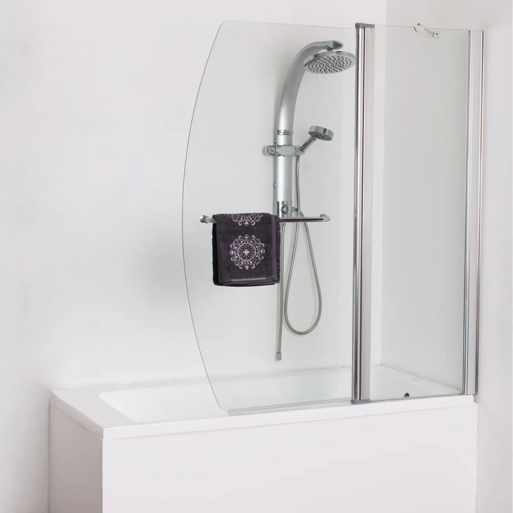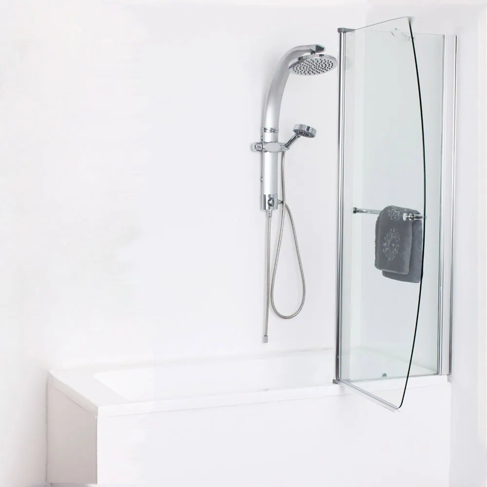 🚿 אמבטיון שיר איכותי 120 ס"מ עם קבוע ודלת נפתחת דו-כיוונית. זכוכית מחוסמת 6 מ"מ, פרופיל אלומיניום ניקל מבריק. גובה 1.40 מ'. זמין בגימורים: שקוף/פסים/גרניט.