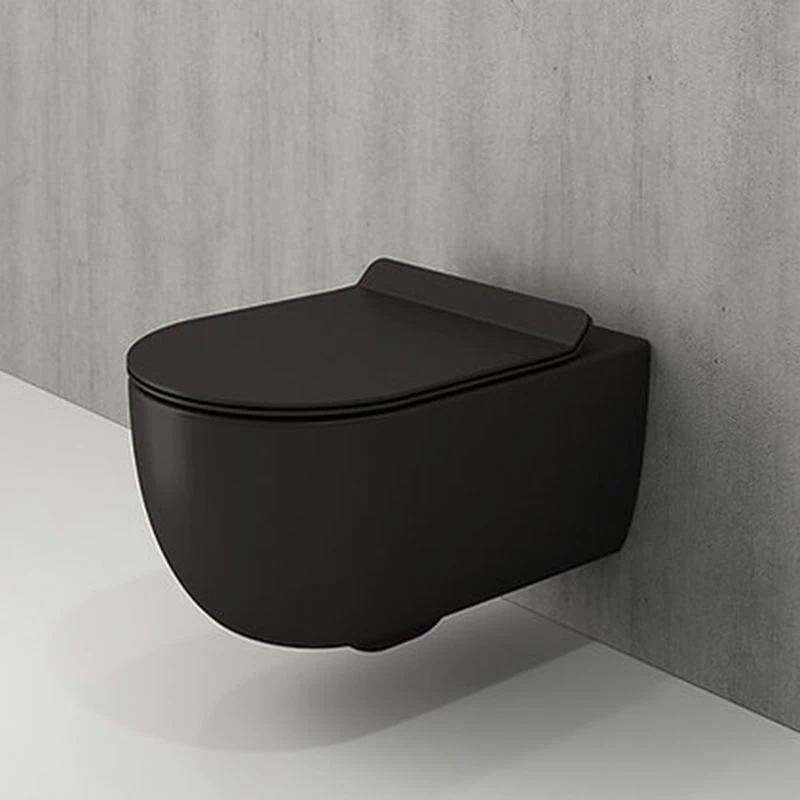 אסלת טונדו שחורה תלויה מבית BOCCHI האיטלקית, עם מושב דק טריקה שקטה וסרטוט מידות מצורף – שילוב של יוקרה ונוחות.