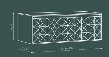 – מידות: רוחב 60 ס"מ, עומק 46 ס"מ, גובה 40 ס"מ