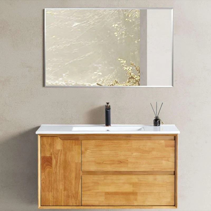 ארון אמבטיה תלוי דגם גורדן 80 ס"מ – עשוי עץ אלון מלא, שתי מגירות ודלת, משטח לבחירה – חרס או בוצ׳ר, טריקה שקטה.