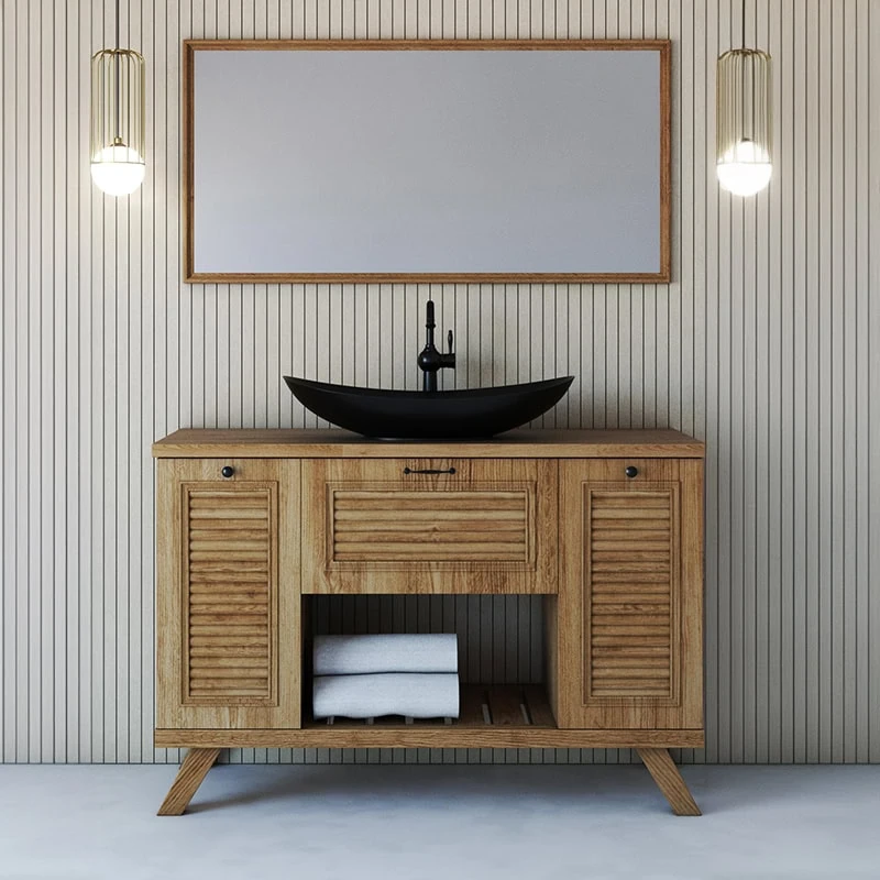 • דגם: נייבה – ארון אמבטיה רצפתי רחב בעיצוב מודרני ומרשים.