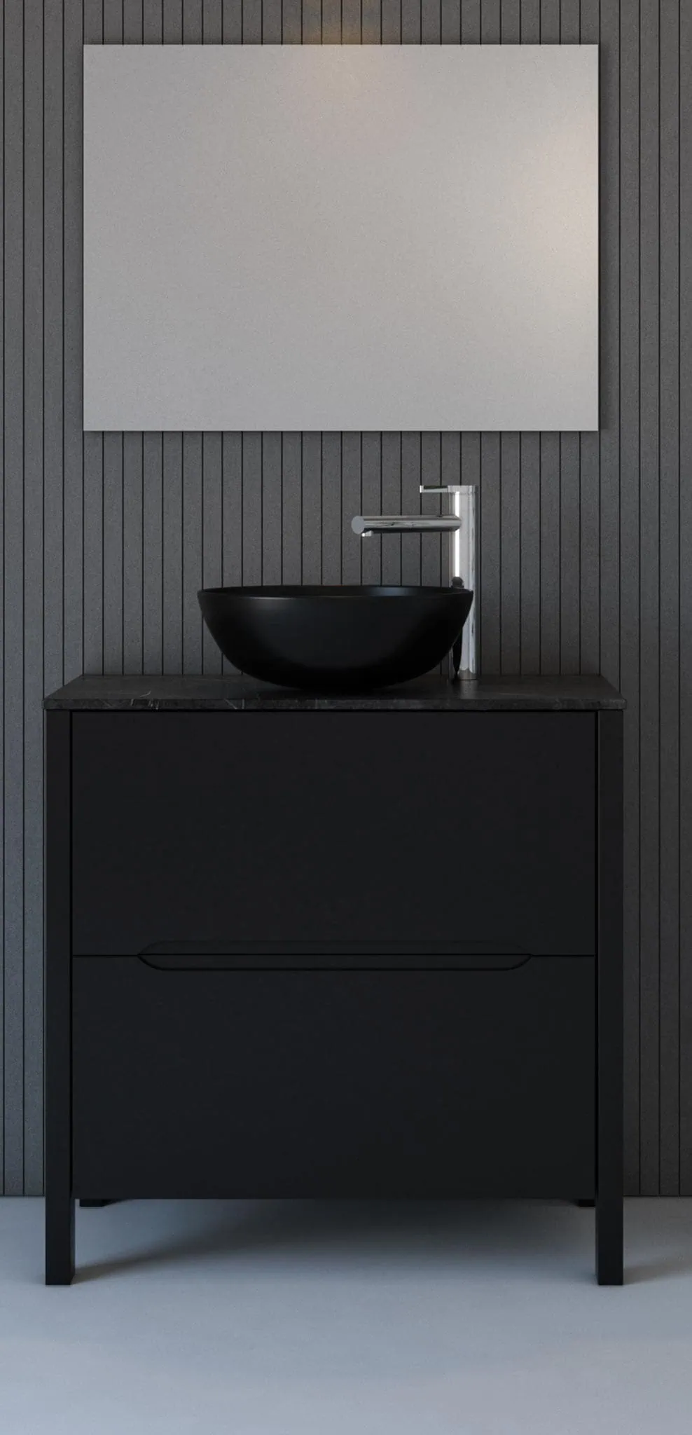 ארון אמבטיה נו יורק בעיצוב יוקרתי עם שתי מגירות טריקה שקטה, משטח בוצ'ר ומראה תלוי מודרני. פתרון פרקטי ואלגנטי לחללי רחצה בסטנדרט גבוה.