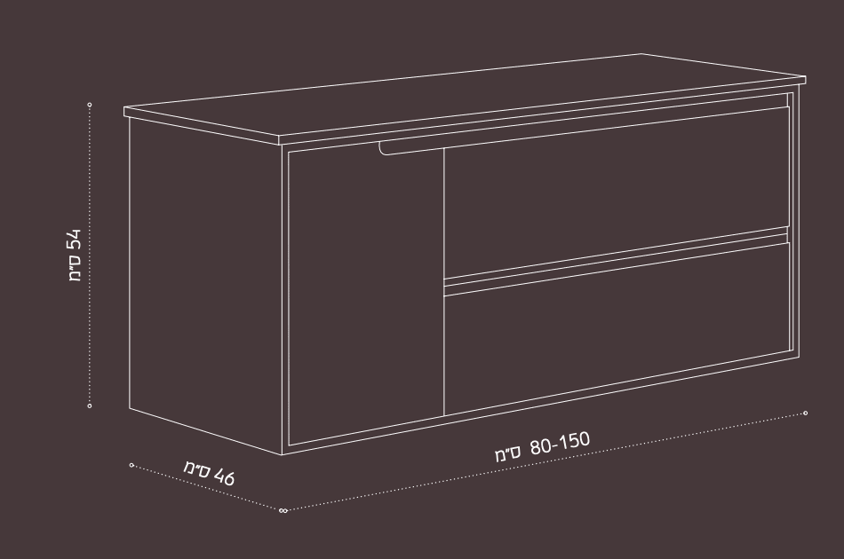 – חזית: פורניר תואם, כוללת שתי מגירות ודלת אחת – חלוקה נוחה לאחסון