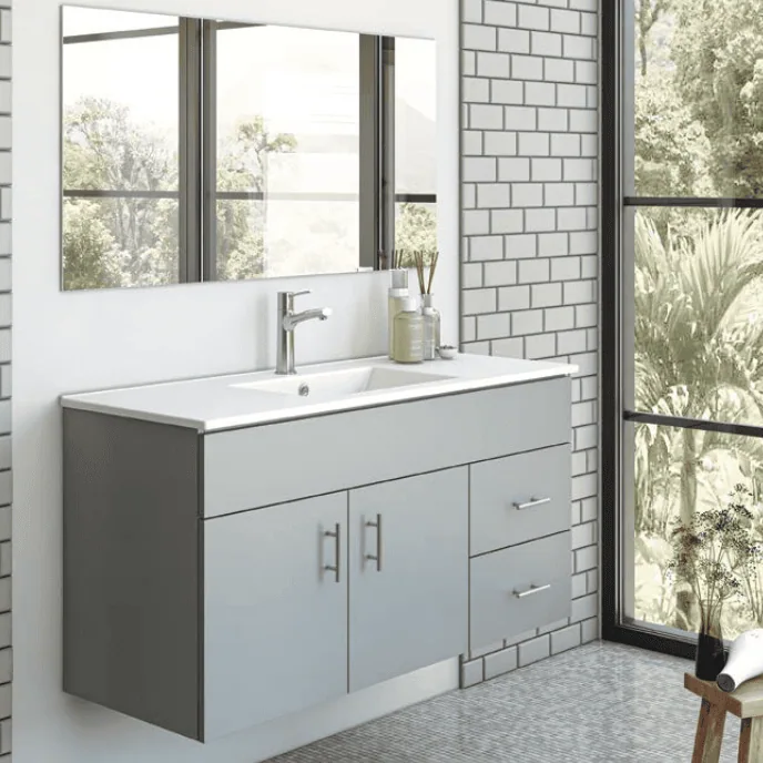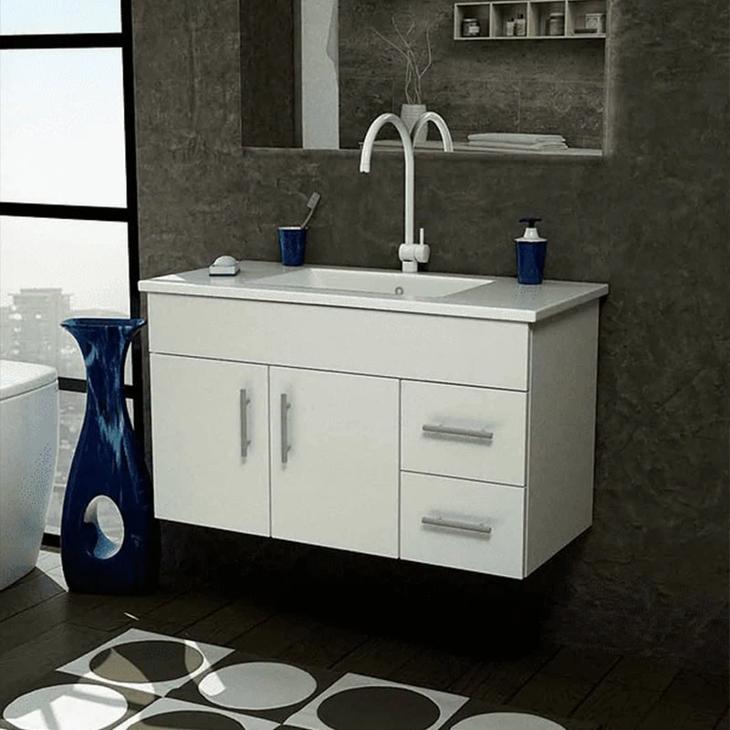 ✨ ארון תלוי בעיצוב אלגנטי. כולל שתי מגירות ודלת עם טריקה שקטה. מושלם לחדרי אמבטיה מודרניים.