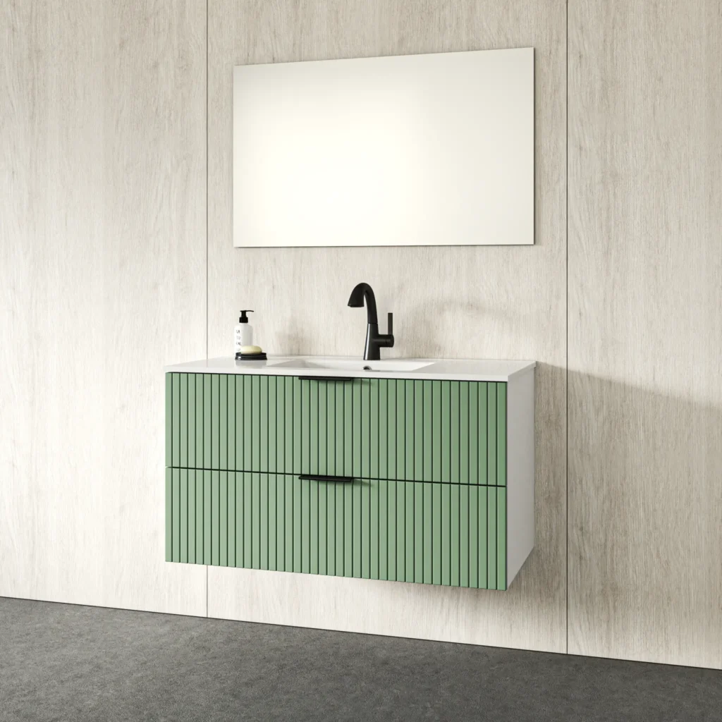 ארון אמבטיה תלוי דגם לאטו מגירות בצבע ירוק מט דפנות לבנות