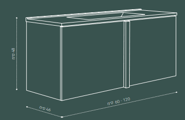 – מידות: רוחב 60 ס"מ, עומק 46 ס"מ, גובה 54 ס"מ