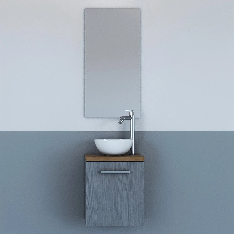 ארון אמבטיה דגם ונציה – שילוב של פורמייקה איכותית עם משטח בוצ'ר, כיור מונח וברז 3006. עיצוב פונקציונלי למרחבים קטנים.