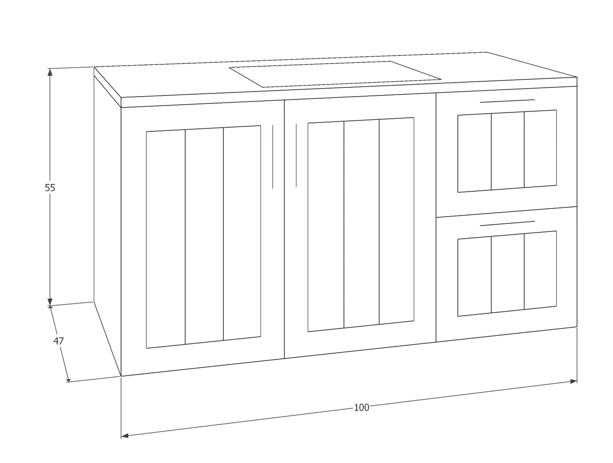 רוחב 100 ס"מ: שתי דלתות + שתי מגירות