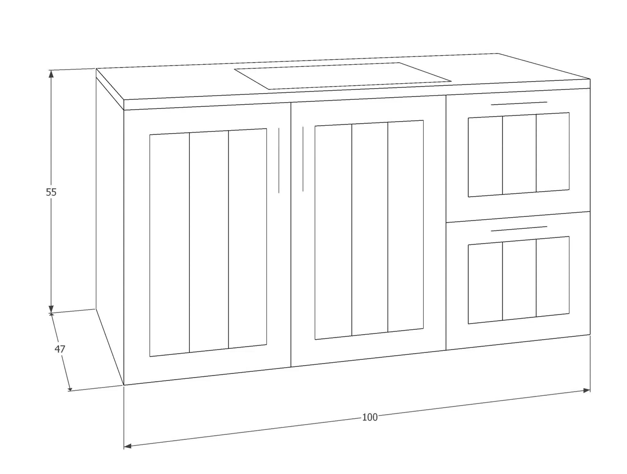 100 ס"מ: שילוב שתי דלתות + שתי מגירות
