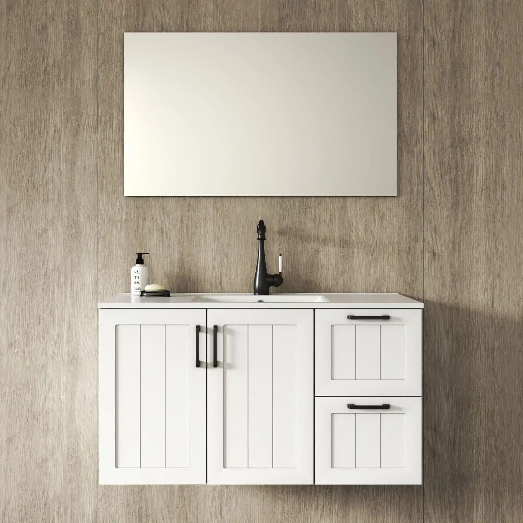 שילוב בין מגירות ודלתות, גוף סנדוויץ' איכותי, משטח חרס, מראה מרחפת וטריקה שקטה