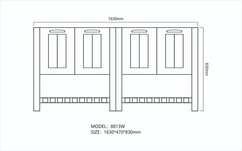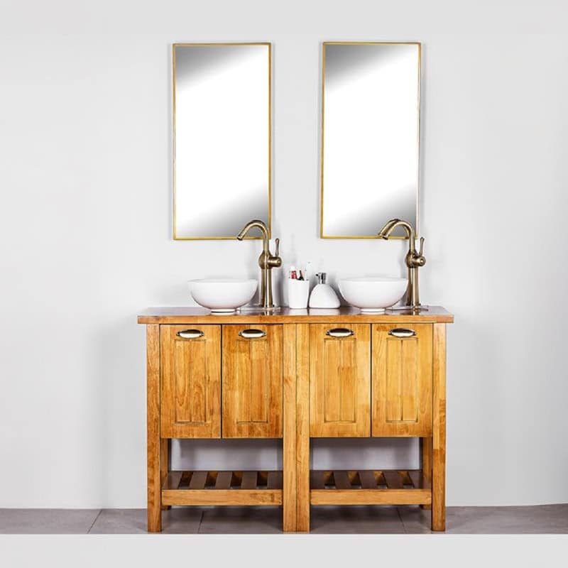 ארון אמבטיה סיציליה יוקרתי ברוחב 163 ס"מ – ארבע דלתות, גימור עץ חמים, כיור חרס לבן וברז ברונזה בגימור עתיק. שילוב מושלם של פרקטיקה וסטייל.