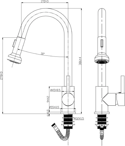 • ברז פרח עם ראש נשלף – שני מצבי זרימה לבחירה: זרם ממוקד או פיזור רחב
