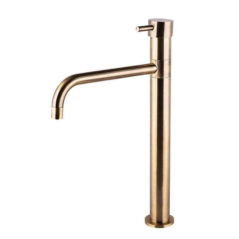 ברז ייחודי בגימור ברונזה צהובה, מיועד לכיורים מונחים. כולל מנגנון מים חמים וקרים ואחריות מקיפה ל-7 שנים – מושלם לאוהבי עיצוב עם נוכחות.