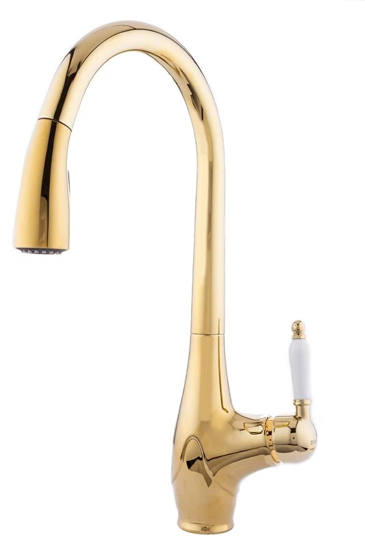ברז פרח נשלף דו-מצבי בגימור זהב, דגם 1494G – עיצוב יוקרתי, תפעול קל ו־7 שנות אחריות יבואן רשמי.