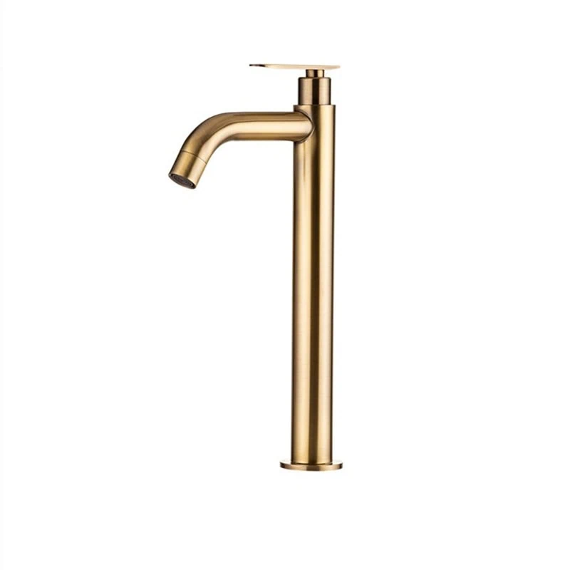 ברז בגימור ברונזה צהובה בעיצוב ייחודי, מיועד למים קרים בלבד ומתאים לכיורים מונחים. אחריות לשנה – שילוב של אסתטיקה ונוחות לחללים פונקציונליים.