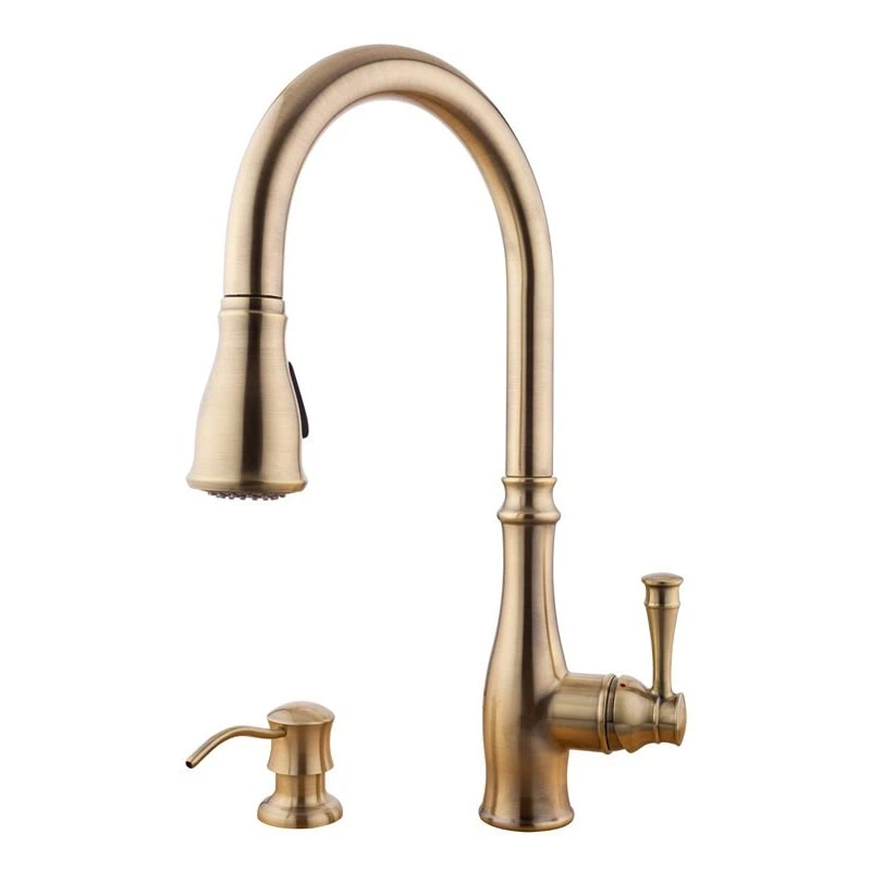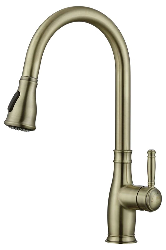 ברז פרח נשלף עם עיצוב ייחודי בגימור ברונזה צהובה, כולל שני מצבי זרימה ורשת סינון. אידיאלי למטבח הדורש מראה עשיר וביצועים מעולים – עם אחריות רחבה ותקן CUPC.