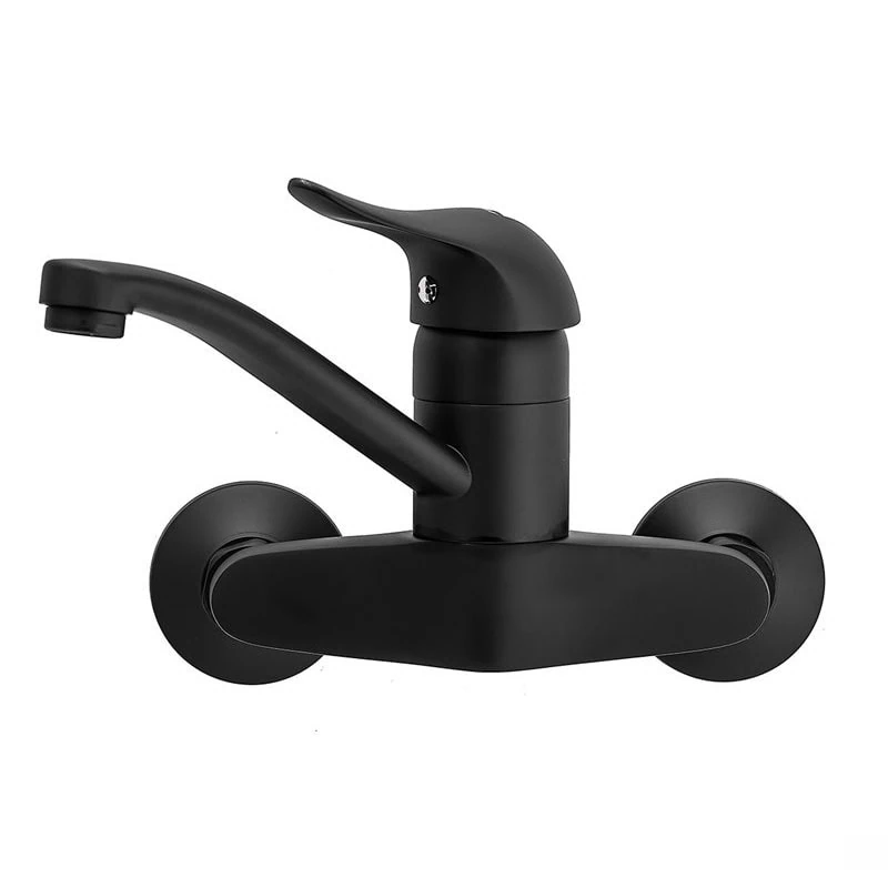 ברז קיר עם פיה עליונה קצרה מסתובבת בגימור שחור מט, באורך 15 ס"מ – פתרון קומפקטי ומודרני לחדרי רחצה עכשוויים, מציע גמישות בשימוש ועיצוב מתוחכם ונקי.