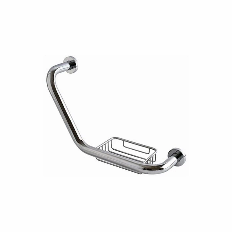 ידית אחיזה בטיחותית עם סבונייה משולבת במידות 50x18x10 ס"מ, זמינה בגימור נירוסטה או בראס. שילוב מושלם של בטיחות ונוחות לחדר הרחצה, מספקת אחיזה יציבה ומתקן סבון נגיש במקום אחד.