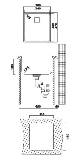 כיור מטבח אולין אנדורא מנירוסטה במידות 38×42 ס"מ. דגם מיני קומפקטי מסדרת אנדורה לחללים מוגבלים במיוחד. מתאים למטבחים צרים, דירות זעירות, קרוואנים ויחידות דיור מינימליסטיות. פתרון חכם עם עמידות מעולה לשימוש יומיומי ותחזוקה קלה.