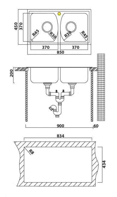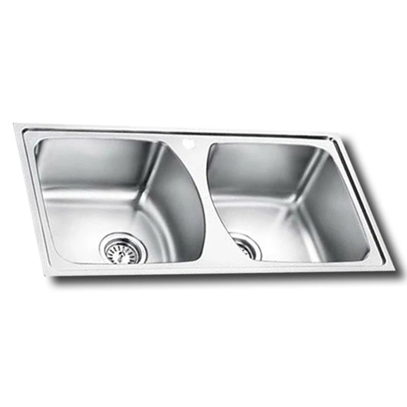 • כיור מטבח כפול בעיצוב קלאסי – שני תאים זהים לשימוש יומיומי קל ונוח