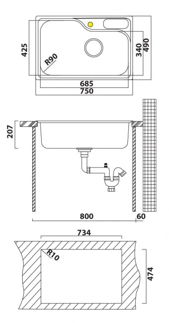 כיור מטבח אולין וסקונסין ol-539 מנירוסטה איכותי. עיצוב מעשי ועמיד במידות נוחות 75×49 ס"מ, המתאים למטבחים בכל גודל. פתרון מושלם לשימוש יומיומי אינטנסיבי.