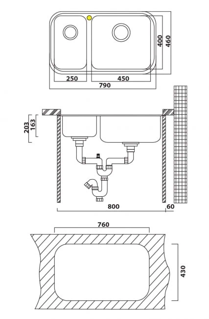 כיור מטבח אולין מיזורי כפול דגם אחד וחצי מנירוסטה איכותית במידות 79X46 ס"מ. שילוב של תא גדול ותא קטן לפונקציונליות מירבית ונוחות שימוש במטבח.