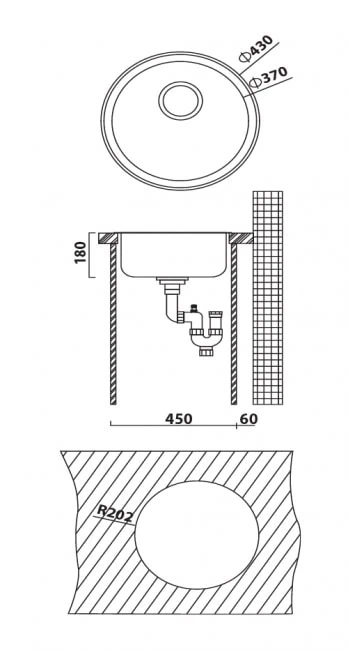 כיור מטבח אולין משיגן עגול מנירוסטה איכותית במידות 43X43 ס"מ. עיצוב קומפקטי ומודרני המתאים למטבחים קטנים ומעניק פתרון פרקטי ואלגנטי.