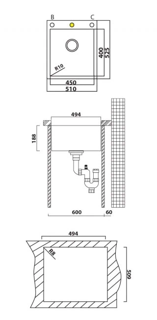 כיור מטבח אולין קווין מנירוסטה במידות מעשיות 51×52.5 ס"מ. פתרון אמין ועמיד למטבח הישראלי, מציע איזון מושלם בין פונקציונליות לעיצוב מינימליסטי מקצועי.
