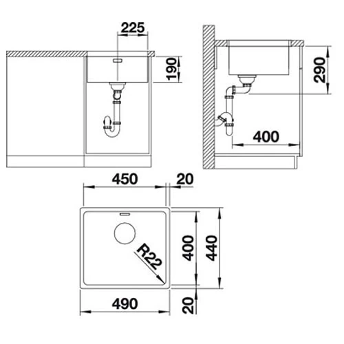 כיור מטבח בלאנקו אנדאנו 450IF מנירוסטה במידות 49×44 ס"מ. דגם קומפקטי ופונקציונלי מסדרת אנדאנו המובחרת. איכות גרמנית מעולה עם תכנון מושלם למטבחים בינוניים או קומפקטיים.