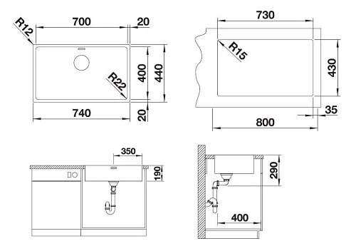 כיור מטבח בלאנקו אנדאנו 700IF מנירוסטה במידות 74×44 ס"מ. דגם רחב וחסכוני בעומק מסדרת אנדאנו לניצול אופטימלי של המקום. איכות גרמנית מעולה עם תכנון חכם למטבחים עם מגבלות עומק.