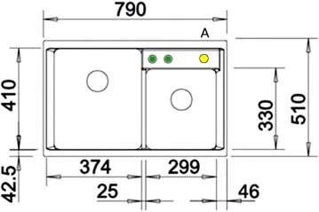 • מבנה: כיור כפול – דגם אחד וחצי עם כיור עזר מובנה