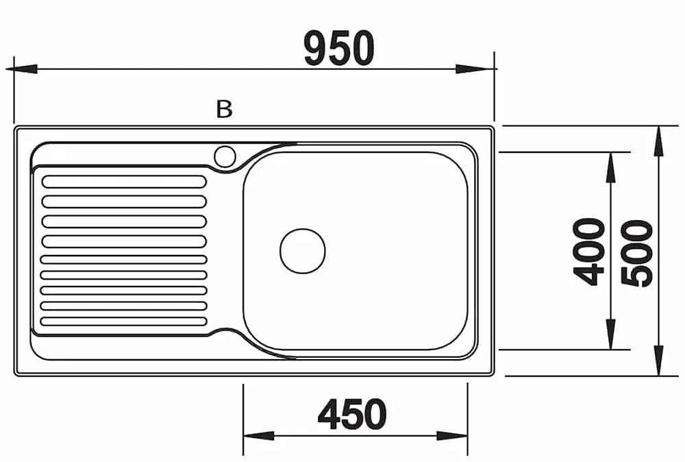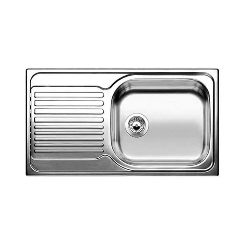 כיור מטבח בלאנקו טיפו 6SXL מנירוסטה במידות 95×50 ס"מ. כיור בודד עם משטח עבודה אינטגרלי מסדרת טיפו המקצועית. פתרון רחב ומרווח עם איכות גרמנית מובטחת למטבח מקצועי או משפחתי גדול.