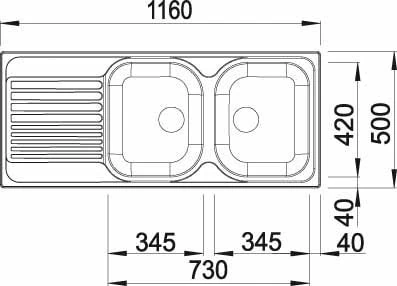 מבנה: כיור כפול עם משטח עבודה אינטגרלי