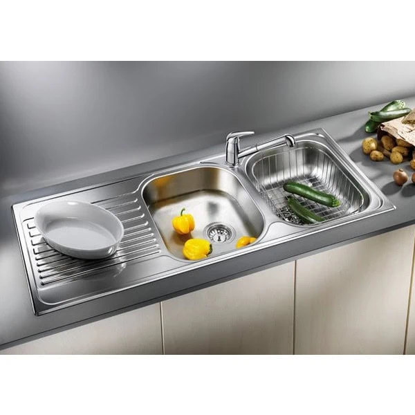 כיור מטבח בלאנקו טיפו 8S מנירוסטה במידות 121×50 ס"מ. כיור כפול עם משטח עבודה אינטגרלי מסדרת טיפו הפרימיום. פתרון מקסימלי עם איכות גרמנית מעולה למטבח מקצועי או משפחתי גדול עם פונקציונליות מירבית.