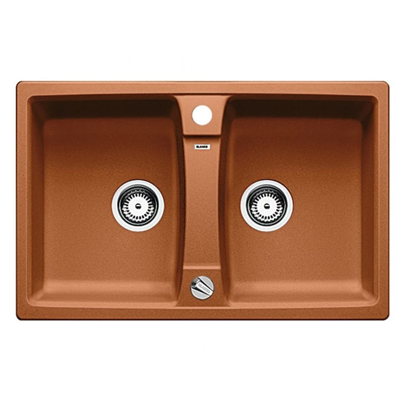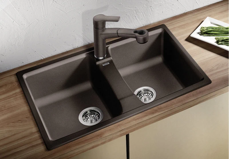 כיור BLANCO דגם לקסה 8 – כיור כפול סימטרי בעיצוב נקי ונוח לשימוש. עשוי סיליגרניט איכותי לעמידות מרבית ועבודה נוחה בכל מטבח.