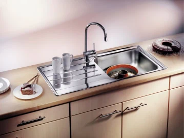 כיור מטבח בלאנקו 6SXL מנירוסטה איכותית במידות 100×50 ס"מ. כיור בודד עמוק במיוחד (17.5 ס"מ) עם משטח עבודה אינטגרלי בצד לבישול אינטנסיבי. עיצוב מודרני בקו נקי עם איכות גרמנית מובטחת למטבח מקצועי ובית.