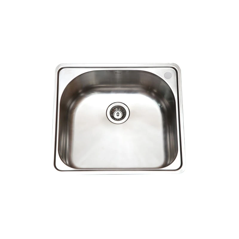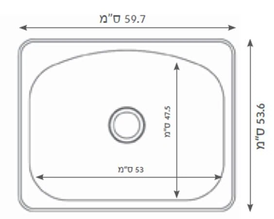 כיור בודד דגם 'חצב' בעיצוב פרקטי, עשוי נירוסטה עמידה, בגודל קומפקטי 59×53 ס"מ – מושלם לשימוש יומיומי.