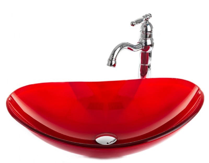כיור מונח זכוכית בגימור אדום דרמטי – עיצוב זכוכית ייחודי במידות 54×36 ס"מ, ליצירת נקודת מוקד צבעונית ומרשימה בחדר הרחצה המעוצב.