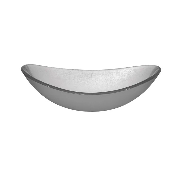 כיור מונח זכוכית בגימור כסף מקומט יוקרתי – עיצוב זכוכית מיוחד עם טקסטורה מתכתית במידות 54×36 ס"מ, ליצירת אלמנט דקורטיבי מפואר בחדר הרחצה.
