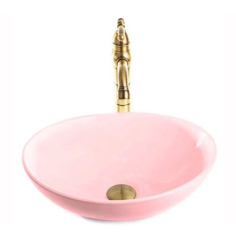 כיור מונח חרס בגימור ורוד מט עדין – עיצוב אובלי ייחודי במידות מדויקות, מוסיף נגיעה רכה ומיוחדת לחדר הרחצה המעוצב.