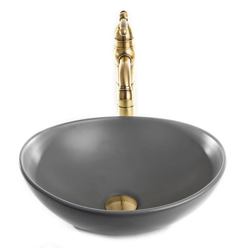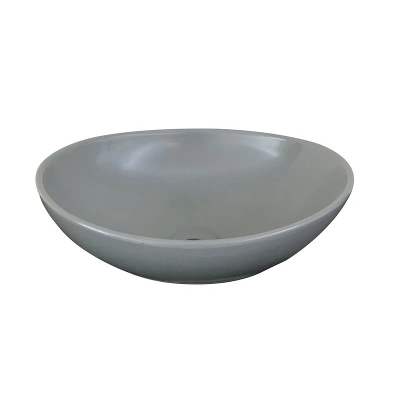 כיור מונח חרס אובלי בגימור אפור – עיצוב אליפטי מרשים במידות 40×33 ס"מ, יוצר נקודת מוקד בולטת ועכשווית בחדר הרחצה המעוצב.