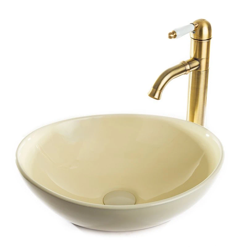 כיור מונח חרס בגוון פרגמון מתוחכם ואמנותי – עיצוב מעודן במידות 41×33 ס"מ, מוסיף נגיעה יוקרתית ובוטיק לחדר הרחצה המעוצב.