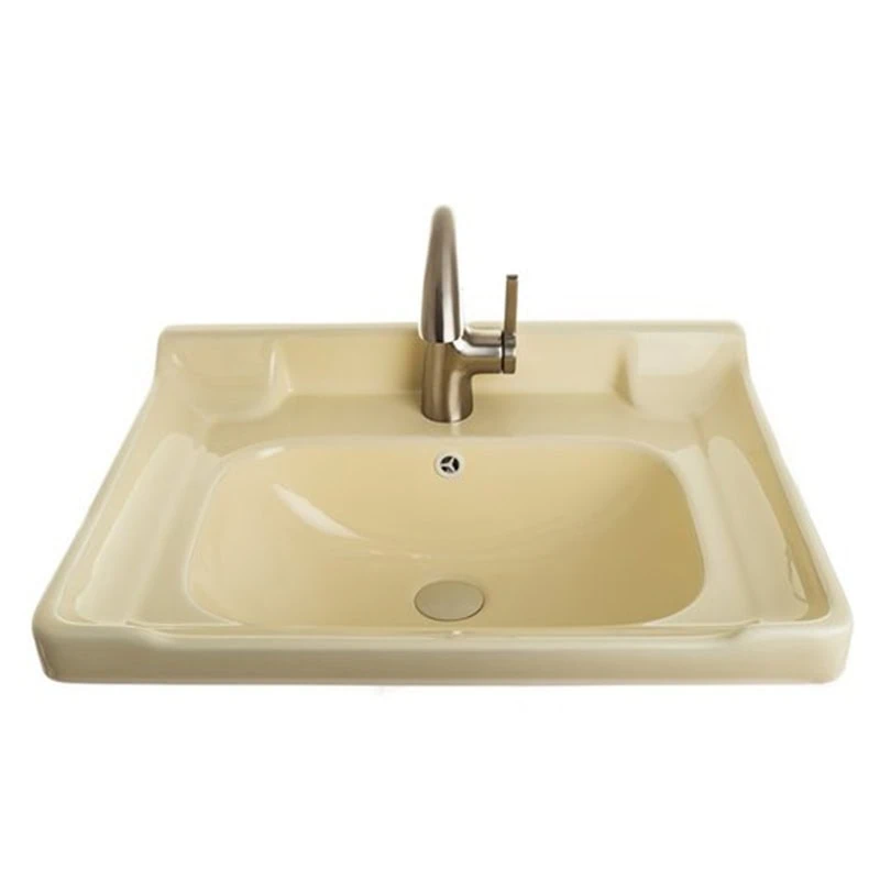 כיור חרס אינטגרלי עם שפה עבה מעוצבת בגוון פרגמון עתיק, במידות 60X47 ס"מ. עיצוב קלאסי ומעודן עם פרטי גימור יוקרתיים המעניק אלגנטיות ונגיעה עתיקה לחדר הרחצה.